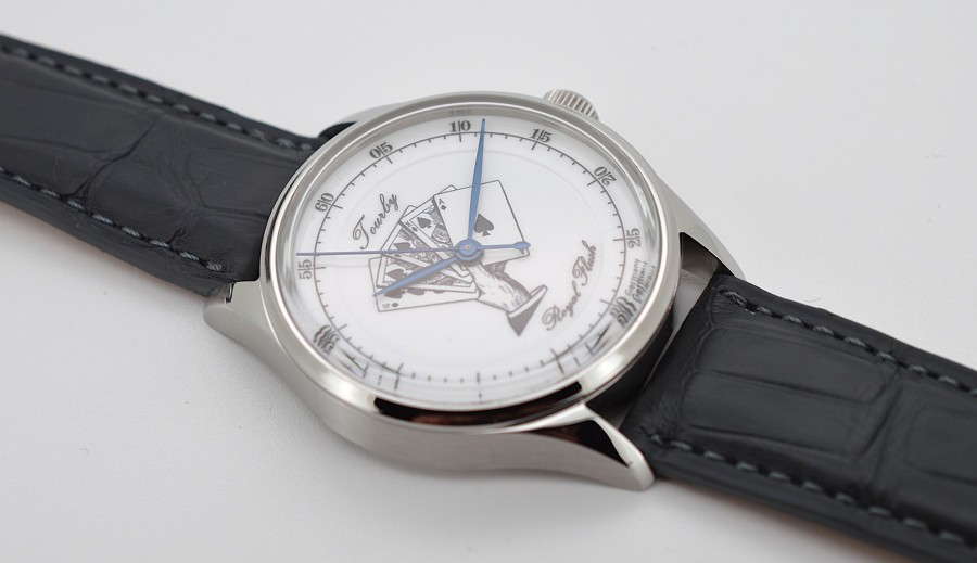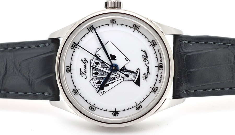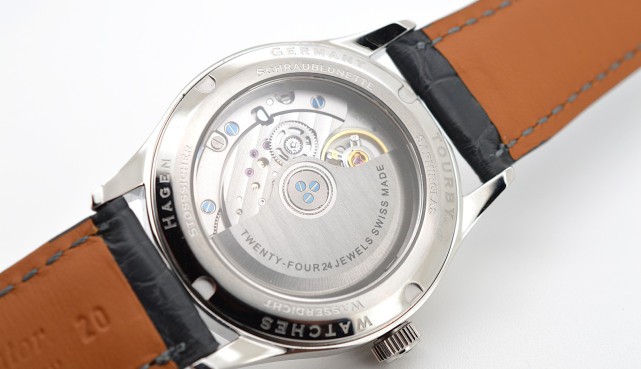 Durch den Saphirglasboden können Sie das Schweizer Automatikwerk bewundern. Für diese Modelle verwenden wir die neuesten Uhrwerke des Schweizer Herstellers La-Joux-Perret.